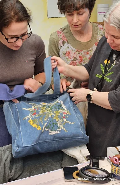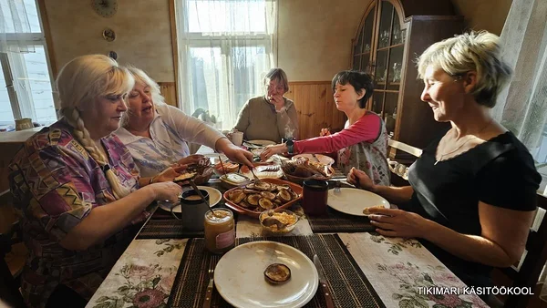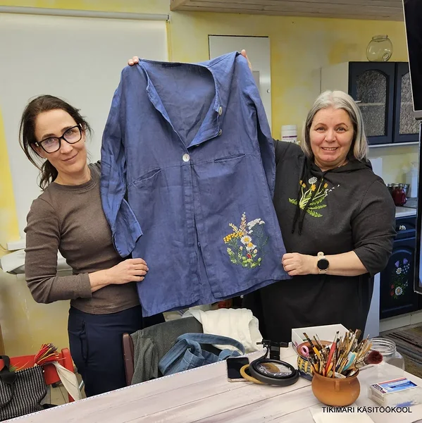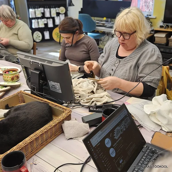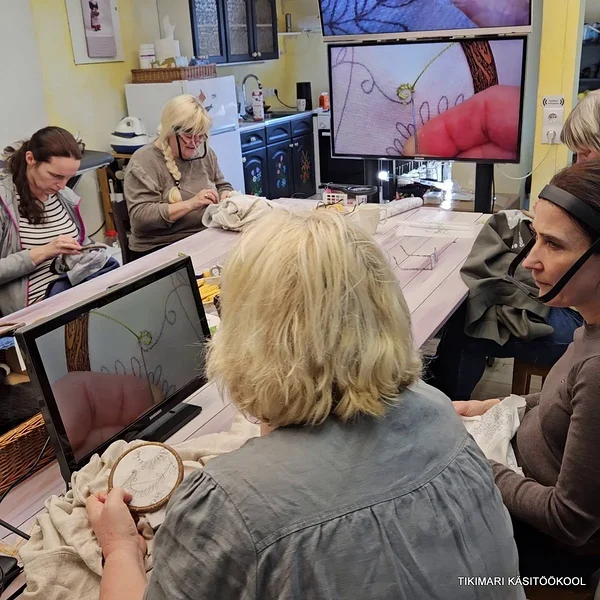 Edasijõudnutega töötada on aga lausa lust! Nad taipavad kõike poolelt sõnalt. Tikivad juba nii osavalt, et enam ei tee vahetki, kas tegu on õpetaja või õpilase tööga! Mõnikord ma mõtlen, et neil polekski ju tegelikult enam vaja koolitusele tulla – nad vaatavad tikitud tööle peale ja juba saavad aru, millist pistet kus kasutati. Kuid kõik nad kinnitasid ühel meelel, et just see meie maja õhkkond, soe vastuvõtt, maitsev toit ja toredad kaaslased on need, mis on alati tulemist väärt.